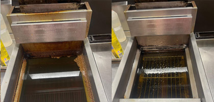 Overused oil not only affects the taste and crispness of fried food but can also create smoke, unpleasant odors, and fire hazards. Our team ensures your fryers are drained, cleaned, and refilled with fresh oil, keeping your kitchen safe and your food at the highest standard.